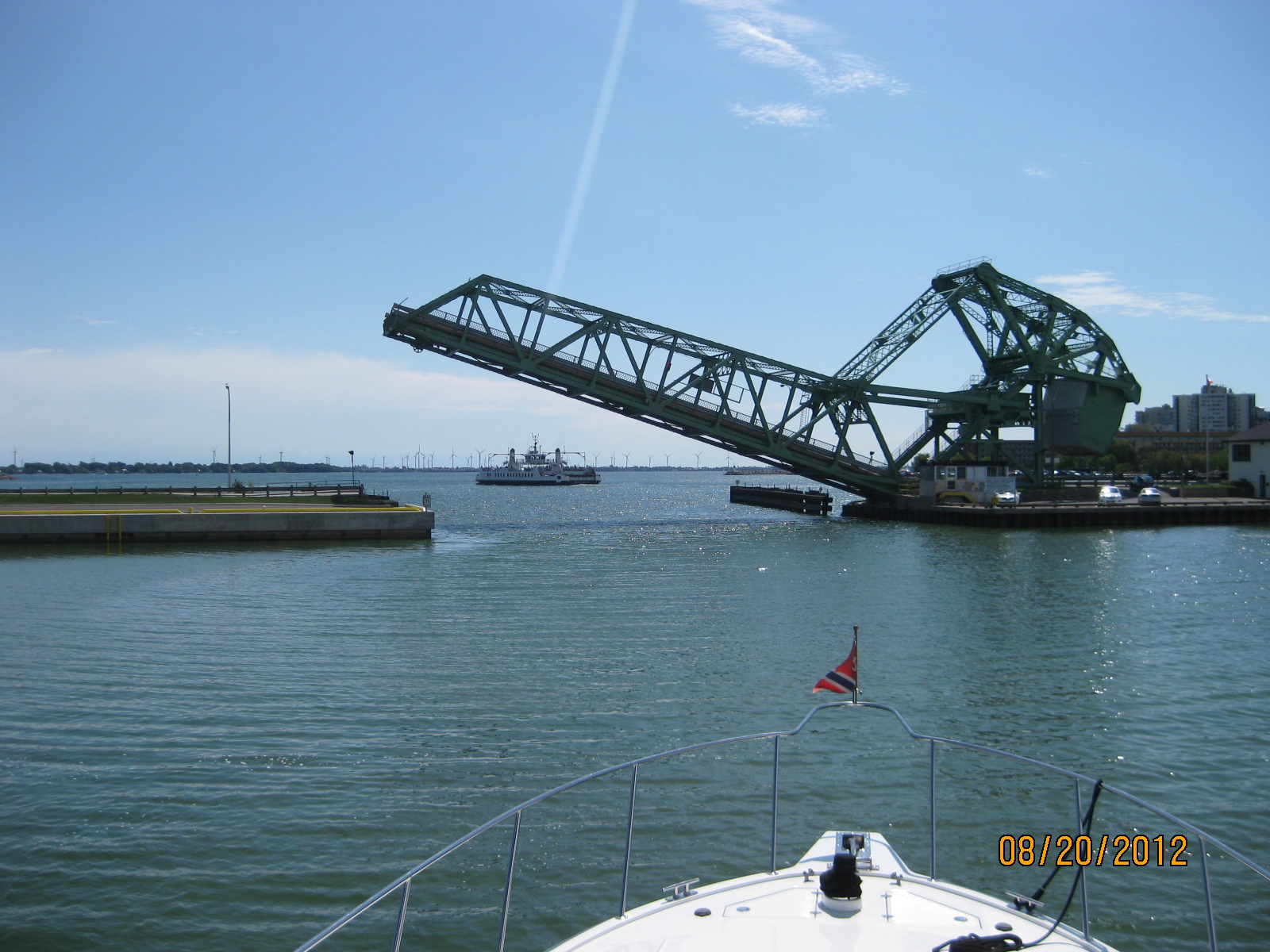 After a great visit we headed up the Hudson River to Troy (Albany) a distance of 165 miles. It is tidal until we passed through the "federal lock" at Troy. Here we entered the Erie Canal, which leads to Buffalo, 340 miles to the west. We only traveled 160 miles on the Erie Canal hanging a right to head north to Oswego, NY on Lake Ontario. We traversed 22 locks on the Erie Canal which lifted us up 450 feet from sea level, and then down 66 feet to the level of the Oswego Canal. We passed 7 more on the Oswego Canal, which lowered us 118 feet to the level of Lake Ontario.